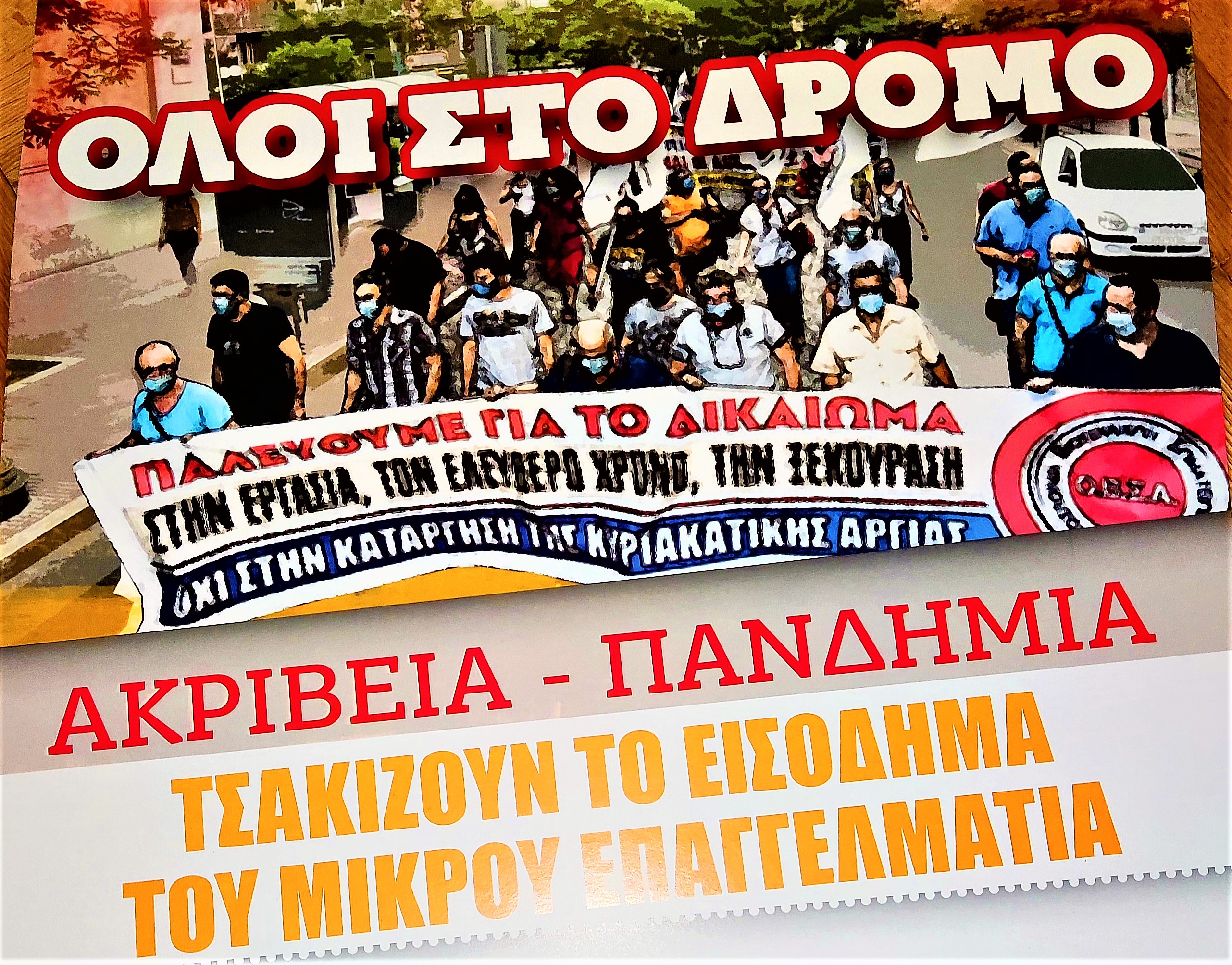 Στη συνέχεια ήρθε η πανδημία. Δυόμιση χρόνια τώρα μας λένε να κάνουμε υπομονή, μας έκλεισαν στα σπίτια και τα μαγαζιά μας, χωρίς κανένα ουσιαστικό μέτρο στήριξης της Δημόσιας Υγείας και του εισοδήματός μας. Οι μεγάλοι επιχειρηματίες θησαύρισαν παίρνοντας εκατομμύρια ευρώ από την πρώτη στιγμή. Εμείς οι μικροί αυτοαπασχολούμενοι και οι οικογένειές μας και άλλες θυσίες, κι άλλη υπομονή!